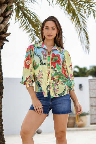 Lyocell Short Sleeve Button-Through Shirt – Tan Stitch Detail